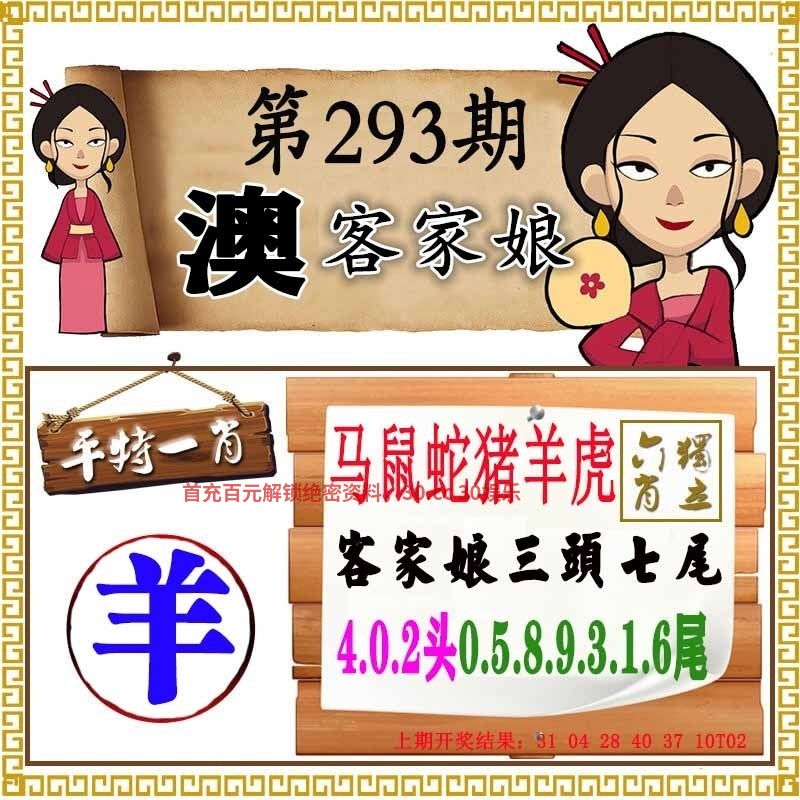 293期:客家娘心水 293期:【客家娘平特一肖】羊羊羊 293期:【客家娘必中六肖】马鼠蛇猪羊虎 293期:【客家娘三头七尾】240头-9603158尾 |